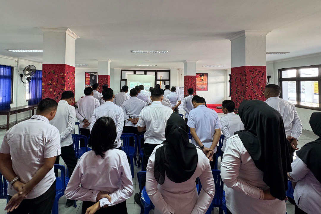 Apel yang dipusatkan di Lapangan Merah Kemenko ini diikuti secara virtual oleh seluruh Kantor Wilayah (Kanwil) dan Unit Pelaksana Teknis (UPT) di seluruh Indonesia, termasuk Lapas Narkotika Pamekasan.