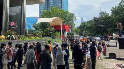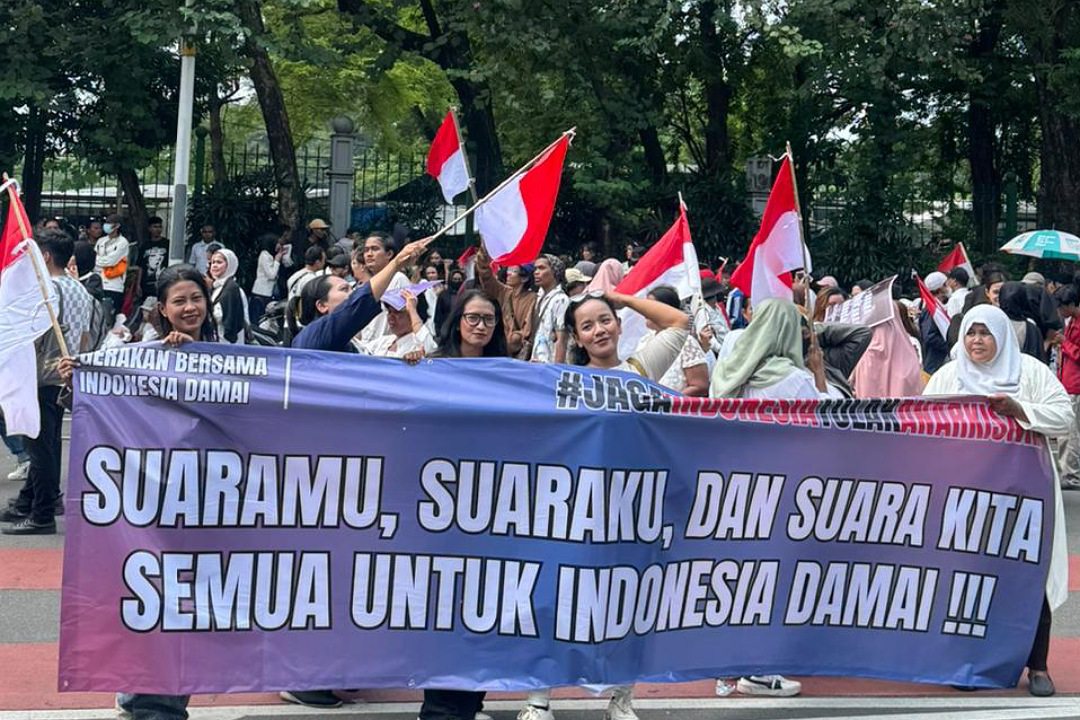 Diketahui, massa tampak membubuhkan tanda tangan pada kain putih panjang yang terbentang di Silang Selatan Monas, langkah mereka disebut sebagai dukungan untuk bersatu dan mejaga perdamaian di bumi Indonesia.